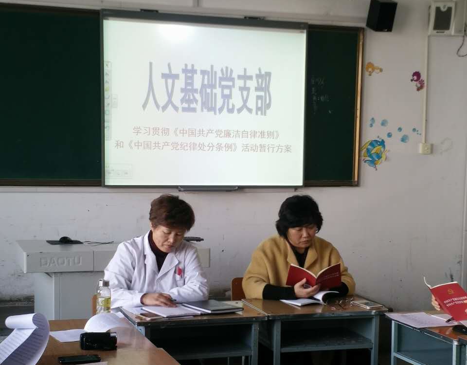12月25日下午,人文基础党支部召开支部大会,专题学习《中国共产党廉洁自律准则》和《中国共产党纪律处分条例》。