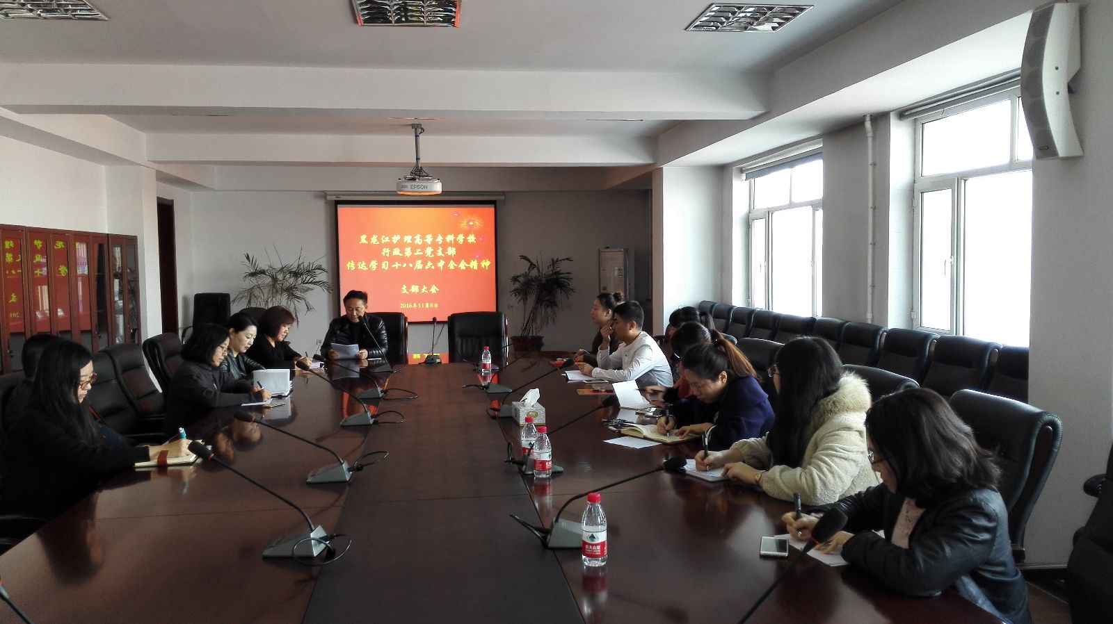 2016年11月8日行政第二党支部全体党员在南岗校区1号楼10楼会议室召开了支部党员大会,原文学习了党的十八届六中全会《公报》、省委书记王宪魁在省委理论中心组学习会上的讲话,《新形势下党内政治生活若干准则》、《中国共产党党内监督条例》。通读四个学习内容的全文后,大家感到很振奋。随后王凤新代表支部提出作为学校行政的工作人员,更要做到能够经受“四大考验”、克服“四种危险”,时刻牢记自己第一身份是党员。要坚持“三会一课”制度,坚持民主生活会和组织生活会制度,强化组织观念,工作中的重大问题和个人有关事项必须按规定按程序向组织请示报告。会上大家踊跃发言,积极表态。表示应该汲取十八届六中全会“从严治党”的精神,从严要求自己。积极地完善自我,努力学习,将理论知识与实践相结合,提高自身的政治修养和文化修养,更好地为学校教育事业发展贡献力量