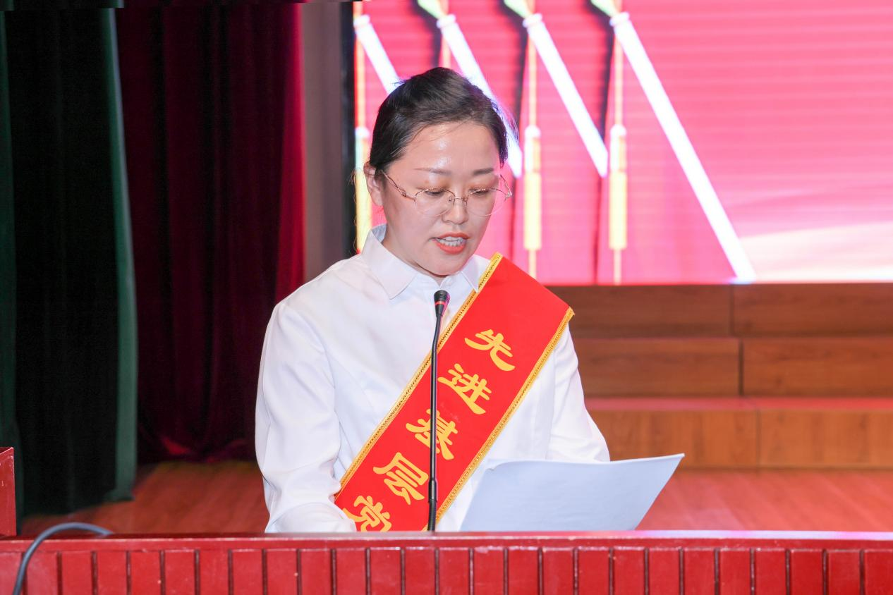副校长夏广军宣读了《关于2023-2024年度优秀共产党员、优秀党务工作者和先进基层党组织表彰的决定》,向学校73名优秀共产党员、50名优秀党务工作者和10个先进基层党组织表示祝贺。优秀党员代表王娜、优秀党务工作者代表马莉、先进基层党组织代表宗晓上台交流发言。