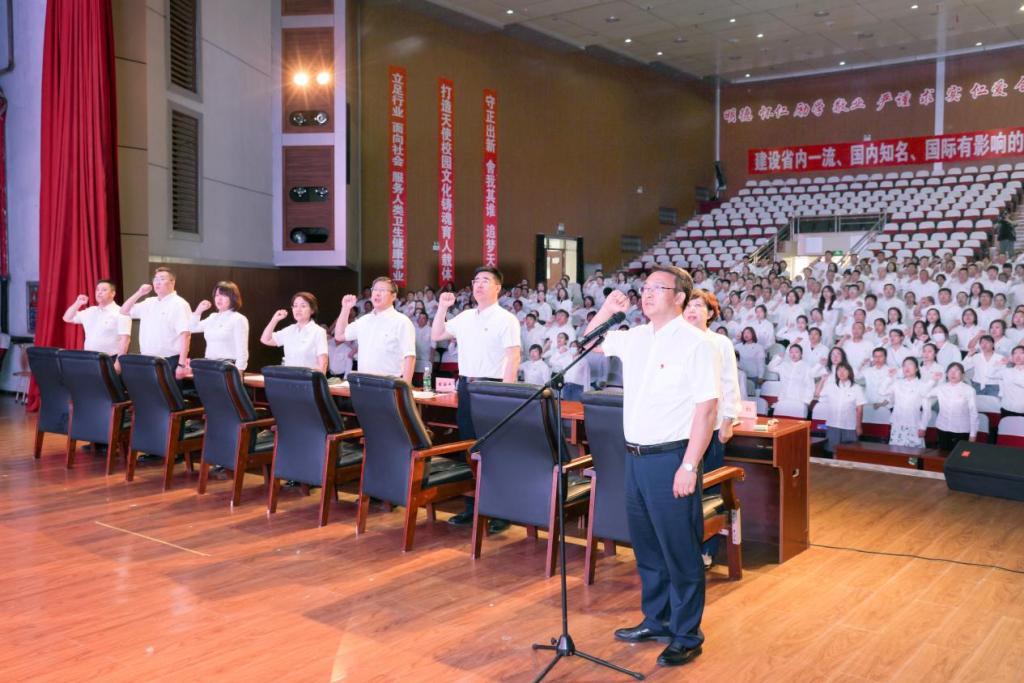6月28日下午,黑龙江护理高等专科学校在南岗校区天使剧场召开党建工作会议暨“七一”表彰大会。学校领导田国忠、张晓杰、夏广军、杨丽妲、于新宇、梁大卓、孟虹、于沛君出席大会。全校教职工党员参加会议。大会由校长张晓杰主持。