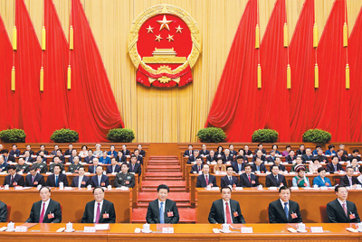 习近平、李克强、俞正声、刘云山、王岐山、张高丽和大会主席团成员在主席台就座。