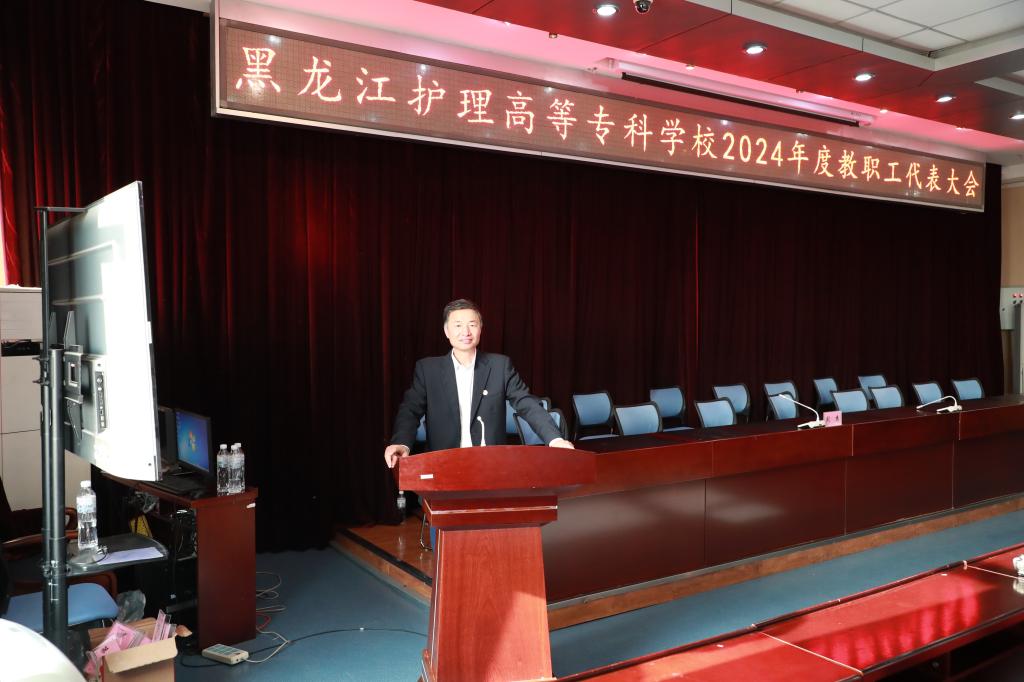 黑龙江护理高等专科学校2024年度教职工代表大会在校歌《追梦天使》中胜利闭幕。