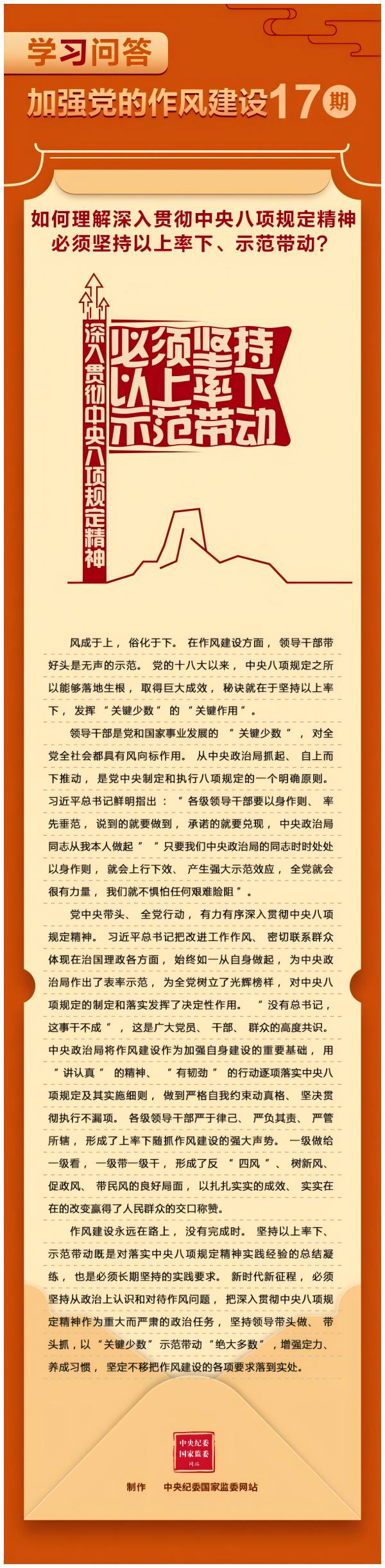 学习问答·加强党的作风建设⑰如何理解深入贯彻中央八项规定精神必须坚持以上率下、示范带动?